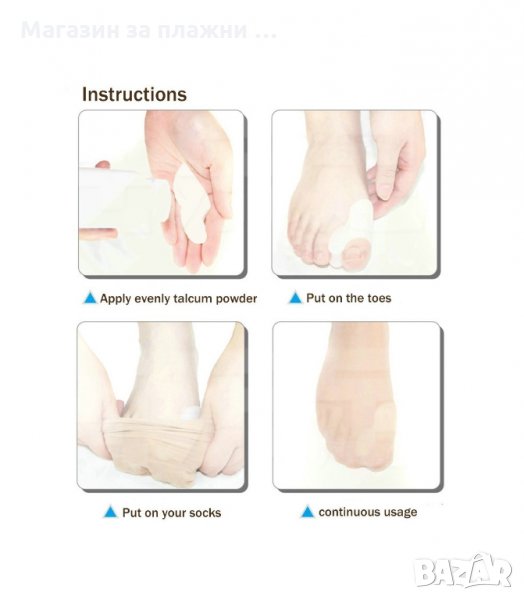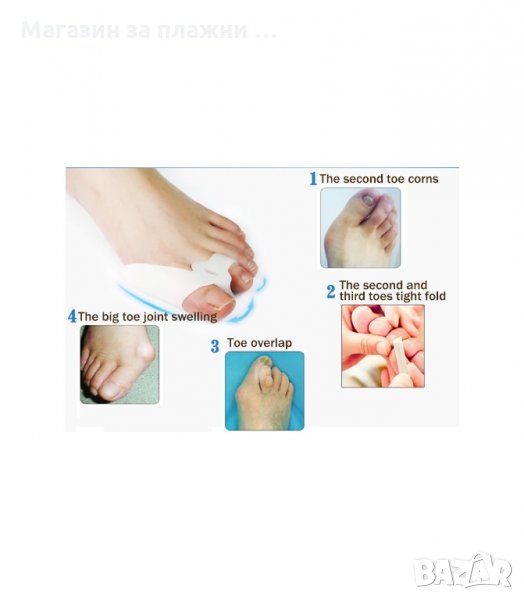 - Облекчаване на болки в областта на първи, втори и трети пръст на крака.