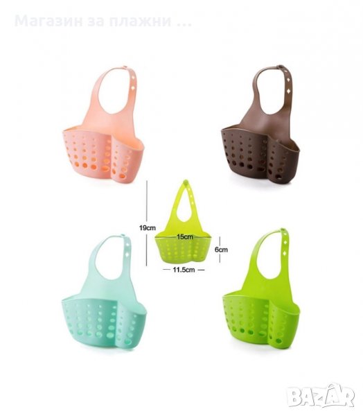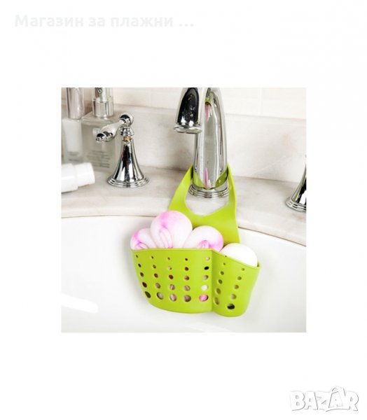 Регулируема кухненска поставка за чешма. Поставка за домакински гъби, телчета, попивателни кърпи, сапуни и други почистващи аксесоари. Със силиконова закопчалка и отвори за отцеждане. Може да се постави и на душа в банята
