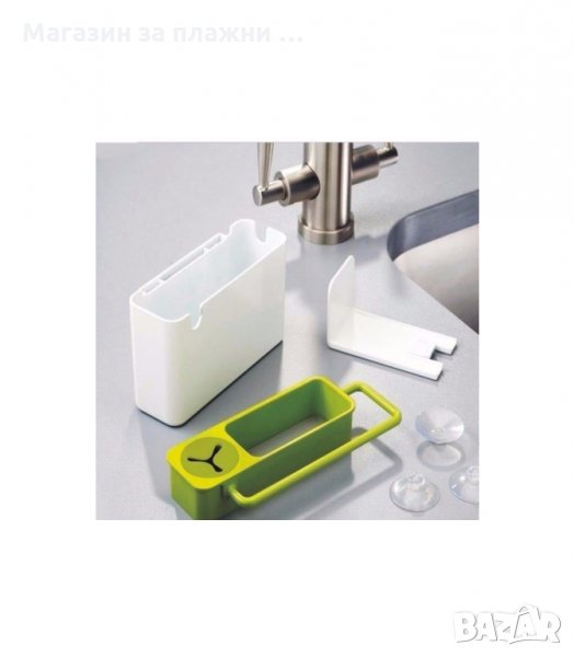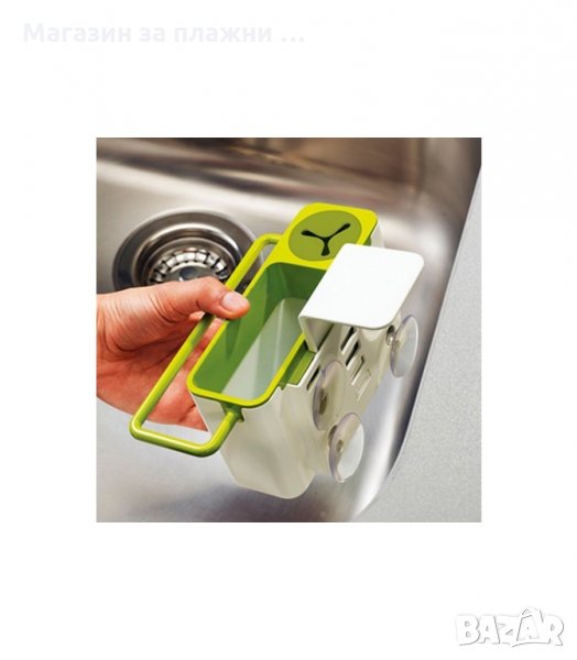 Органайзер за мивка - всички гъбки, шванти и др. са подредени и се оттичат директно в мивката ; Четири вакуумчета се захващат към права стена на мивката с гладка повърхност.