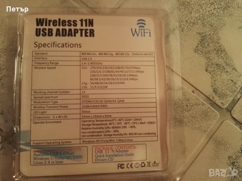Продавам нов безжичен Wireless USB Адаптер за интернет RTL8192 USB 2.0 300Mbit. Изключително компактен размер. Операционни системи Windows 2000/XP/Vista/Linux, Windows 7, Windows 8 и Windows 10. За Windows 10 тръгва автоматично без инсталация на драйвери (разпознава сам драйверите), за останалите операционни системи е нужно да се инсталира драйвера от диска. Комплектът съдържа USB Адаптер и CD Driver.