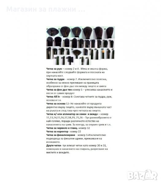 КОМПЛЕКТЪТ ВКЛЮЧВА всички необходими четки за направата на грим.