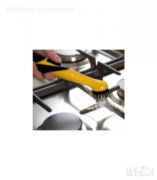 Отгоре е с бутон и когато го натиснете започва да се върти. Тя е подходяща за почистване на мивки, фурни, бани, както и за тенджери, а също така можете да я използвате и за почистването на вашата кола: за прозорците, детайли от интериора, както и за джантите.
