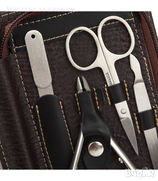 Луксозен несесер изработен от естествена кожа, съдържащ 9 бр. инструменти за поддръжка на ноктите.