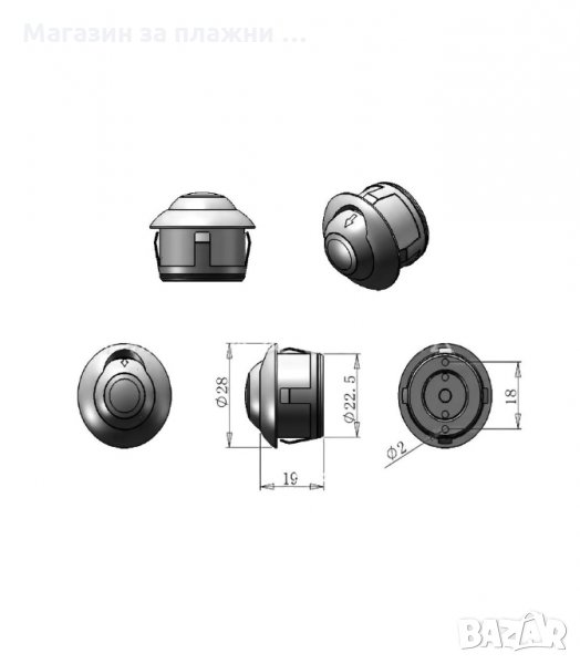 Камера универсална с насочващи линии и огледална снимка -възможност за включване / изключване на направляващите линии, както и възможност за включване / изключване на огледалното изображение. Ъгъл на виждане 170 °. Камерата е възможно да бъде инсталирана като за задно виждане, така и за предно (директно изображение).