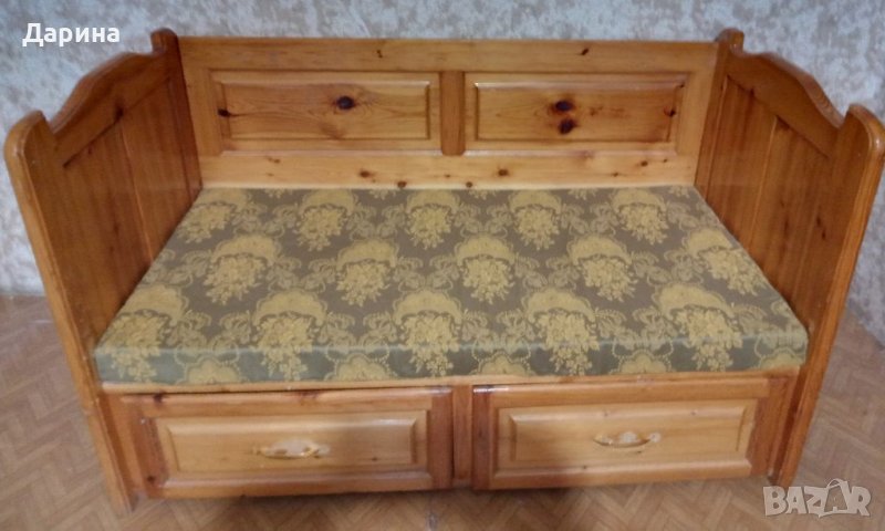 Кушетка , Легло от масивно дърво с размери : 143 / 77 / 90 и две дълбоки чекмеджета с размери : 60 / 58 + дунапренен