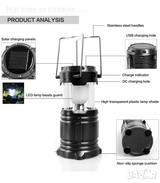 1бр. Соларна къмпинг лампа с USB зарядно
