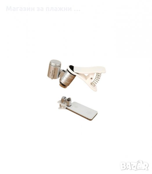 Микроскоп за мобилен телефон с увеличение 60X, макро обектив, регулиране на фокуса, LED осветление, UV светлина и възможност за демонтиране на щипката