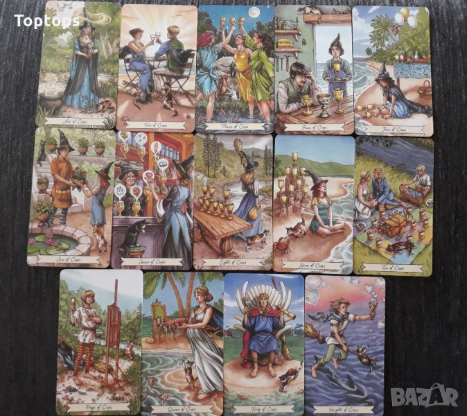 * Everyday Witch Tarot е много чаровна колода, при която картите са изпъстрени с хора, които въшебстват. И няма да намерите карта без котета :). Всички 78 аркани са с изписани имена и номера върху картите.