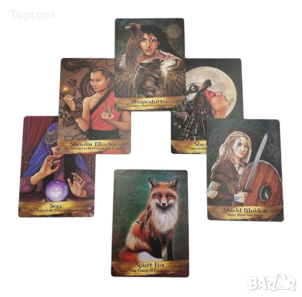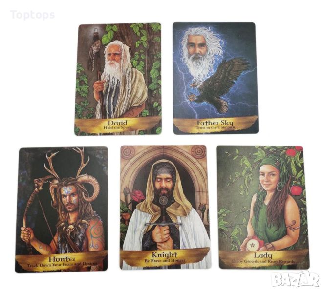 - 55 оракул карти - The Angels and Ancestors Oracle Cards с pdf файл с инструкции на английски. Размерът им е 10,3см х 7,5см, автор е Kyle Gray.