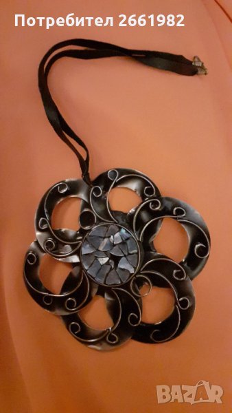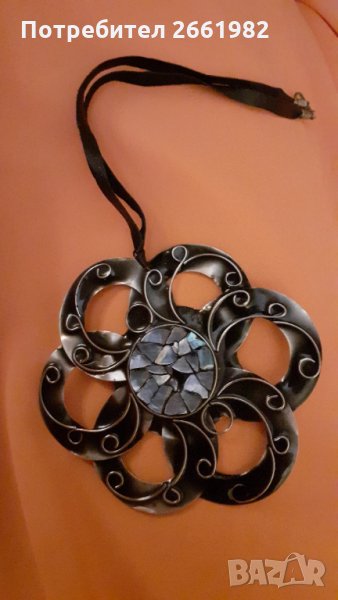 Уникално колие цвете със син седеф-ръчна изработка → Обява 34299136