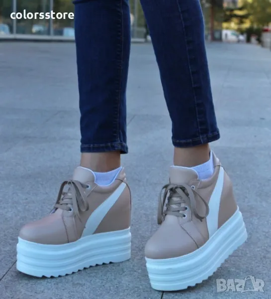 Кецове на платформа - бежови с бяла лента - SJN56