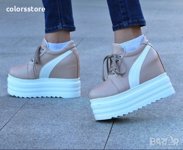 Кецове на платформа - бежови с бяла лента - SJN56