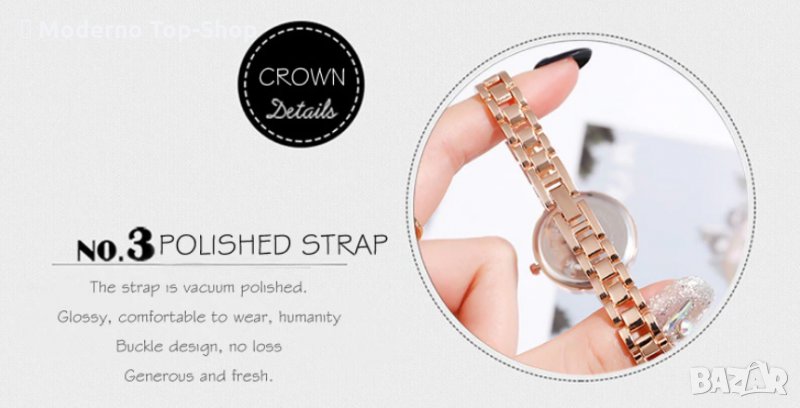 Комплект дамски кварцов часовник с кристали + Подарък гривна. → Обява 34300866