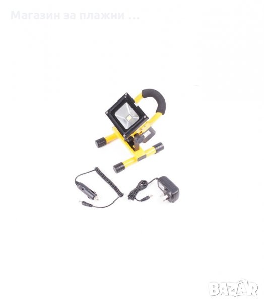 Преносим Акумулаторен 10 или 20W LED Прожектор със Стойка с възможност да се зарежда от запалка на автомобил или от домашната електрическа мрежа, което го прави изключително удобен за използването му като къмпинг осветление.