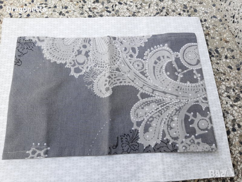 38 см х 20 см, сиво-бяла,ръчна изработка, пере се и се глади, предпазва книгата от петна