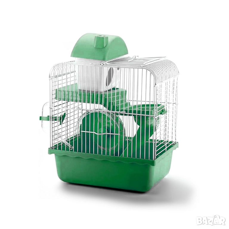 Клетка за хамстер, оборудвана с поилка, хранилка и колело. Клетки за хамстери.