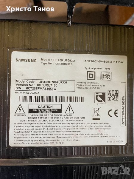 Мейнборд Samsung BN41-02703А, BN94-14884S, свален от UE43RU7092UXXH със счупен дисплей