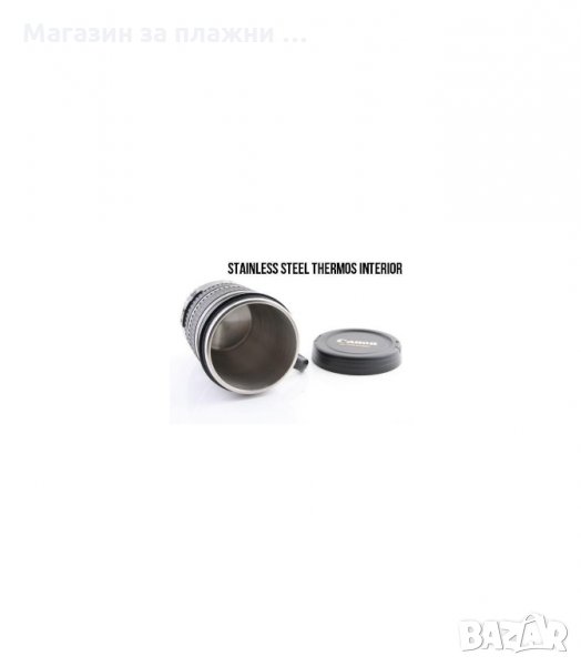 Този модел термо чаша е изключително подходящ за вас, ако искате да се отличите, да ви е удобно, приятно и да се радвате на своята любима напитка навсякъде и по всяко време. Моделът е произведен от висококачествени материали и притежава отлични топлоизолиращи качества, запазващи температурата на напитката непроменена за по-дълго време. Чашата е с дръжка за повече удобство и е страхотен избор за подарък, особено на запалените по фотографията. Визията е абсолютно копие на фотообектив Канон. Разполага и със стабилно капаче, което защитава съдържанието от разливане и ви дава сигурност при движение.