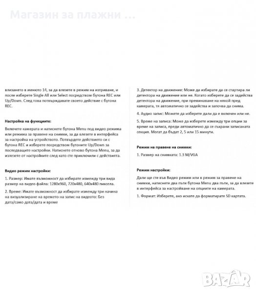 Резолюция при запис: 1280 * 720/848 * 480/640 * 480 пиксела (кадъра в секунда 10/20/30 кадъра в секунда, за да бъде избран)