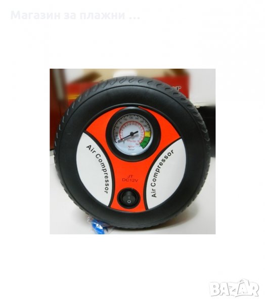 Портативен компресор с формата на гума,подходящ за надуване на автомобилни и велосипеднии гуми,матраци и дюшеци