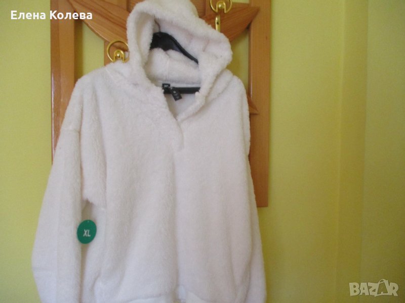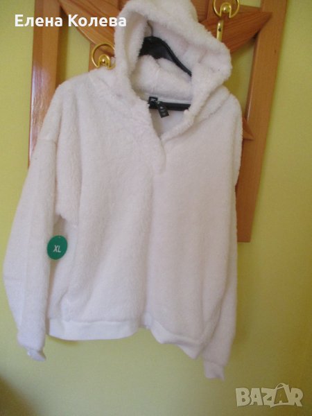 Продавам БЯЛА ВЪЛНЕНА БЛУЗА – с качулка