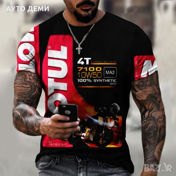 Продвам качествени фенски тениски от дишащта материя с надписи и емблеми на Кастрол ,Мотул ,Шел , Шампион автомобилна свещ и други.
