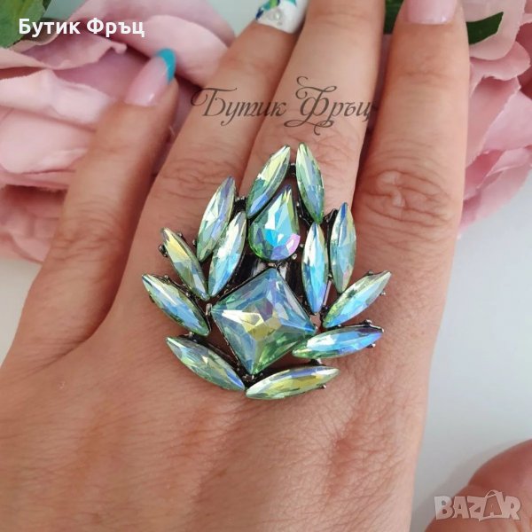 Пръстен кристали еда, снимка 1 - Пръстени - 34311826 Пръстен кристали еда, снимка 2 - Пръстени - 34311826 1/2