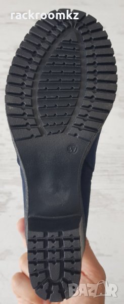 Дамски боти от естествена кожа със стабилно и здраво не парзалящо се ходило на нисък ток, цвят - тъмно син. Топла подплата.
