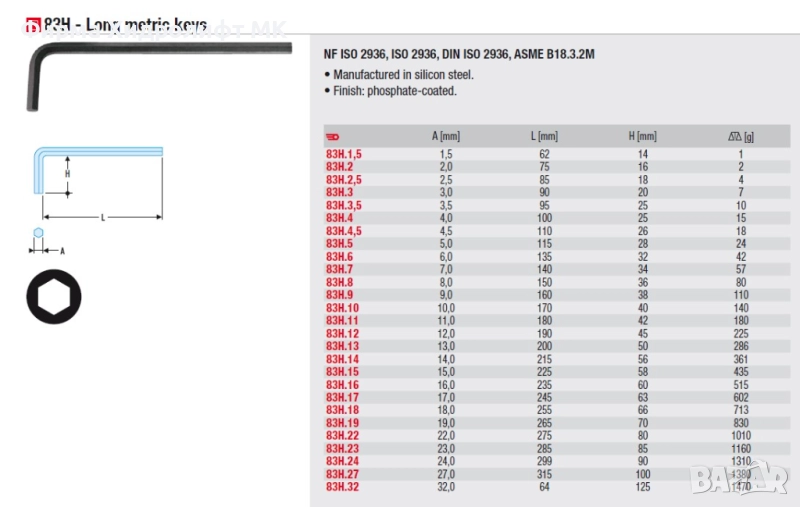 FACOM 83H Шестограм удължен - различни размери и цени