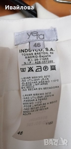 Пролетно - летен елегантен дамски костюм в бял (леко шампанско) цвят - 46 мярка