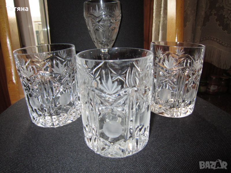 Кристалните съдове са произведенив ЧЕХИЯ,а чашите в Сливен.
