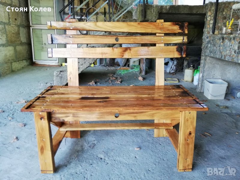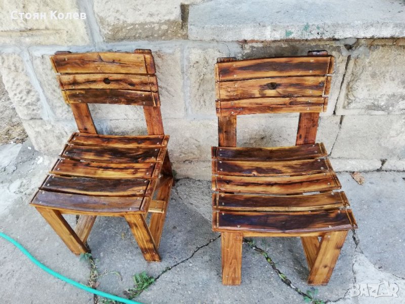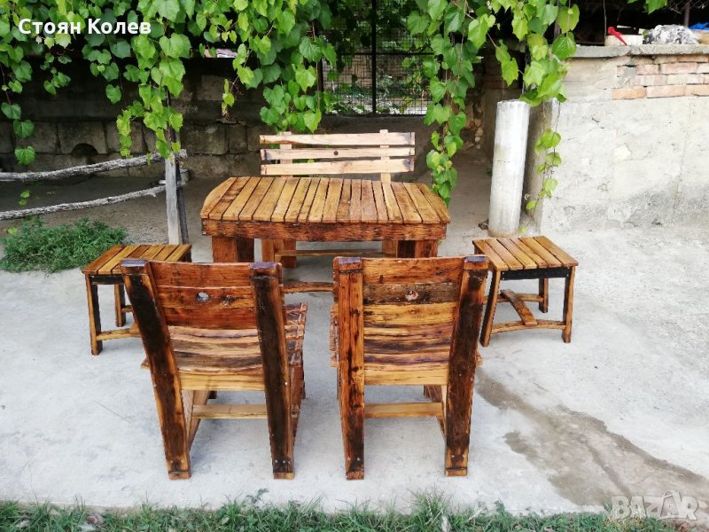 Комплект от 6 части. Маса пейка два стола и две табуретки. Изработени от стари бурета, материал дъб и акация.