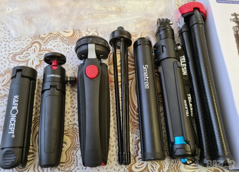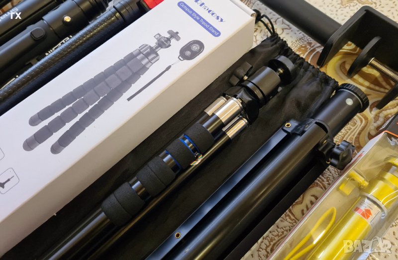 Студийни стативи , селфи стикове няколко модела, подходящи за светкавици, фотоапарати, телефони, осветление