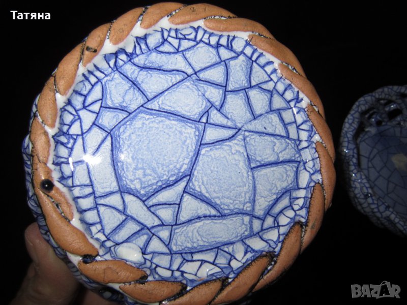 СНИМКА 8-11 РЪЧНО ИЗРАБОТЕНА КЕРАМИКА ;ВИСОЧИНА 4 И 7СМ ;ДИАМЕТЪР 10 И 12СМ.ЦЕНА 12 € И 15 €; СОЛНИЦА - 6 €;