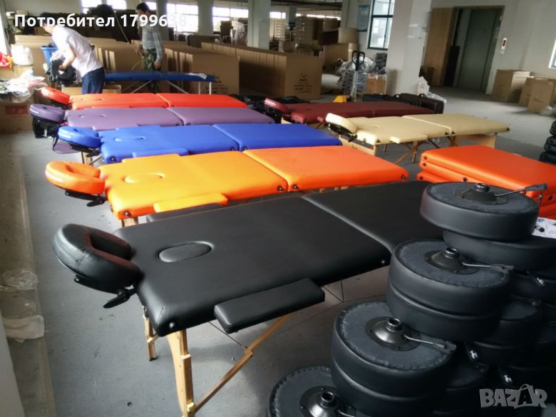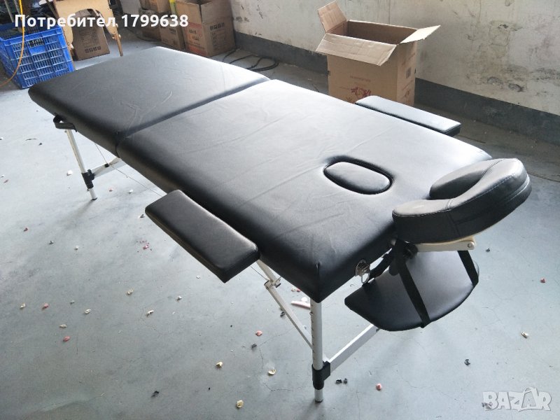 Кушетката за масаж е тапицирана с водоустойчив и устойчив на масажно олио винил.