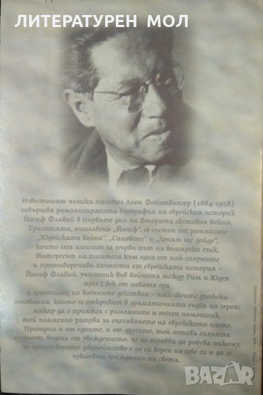 Известният немски писател Лион Фойхтвангер /1884-1958/ завършва романизираната биография на еврейския историк Йосиф Фравий в първите дни на Втората световна война. Трилогията, озаглевена "Йосиф", се състои от романите "Юдейската война", "Синовете" и "Денят ще дойде", които сега излизат за първи път на български език. Интересът на писателя към една от най-спорните и противоречиви личности от еврейската история - Йосиф Флавий, участник във войната между Рим и Юдея през І век от новата ера и летописецът на военните действия - има своите дълбоки основания, които се откриват в драматичната съдба на героя: макар да е приятел с римляните и техен помощник, той пламенно ратува за оцеляването на еврейското племе. Презиран и от едните, и от другите, той остава силната личност, водена от убеждението, че не трябва да робува никому, че единственото достойнство е да си верен на себе си и да се чувстваш гражданин на света.