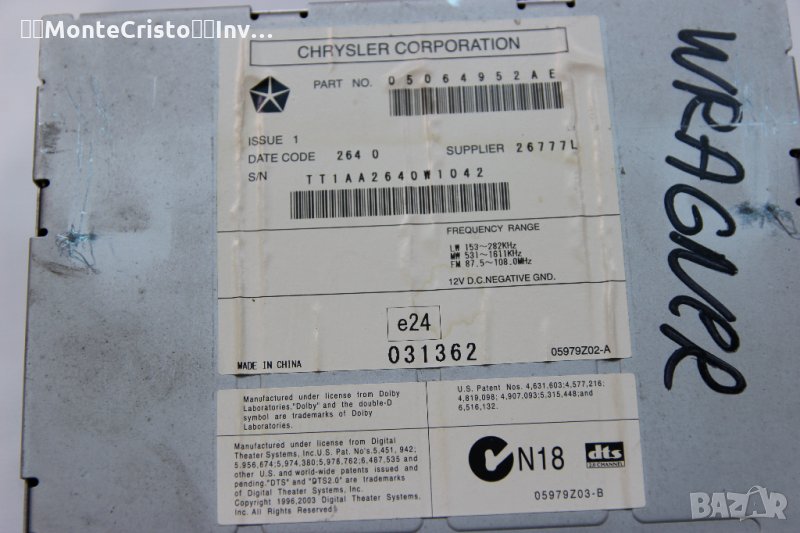 CD MP3 DVD AUX Radio Jeep Wrangler JK (2007-2018г.) 26777L касетофон → Обява 34333785