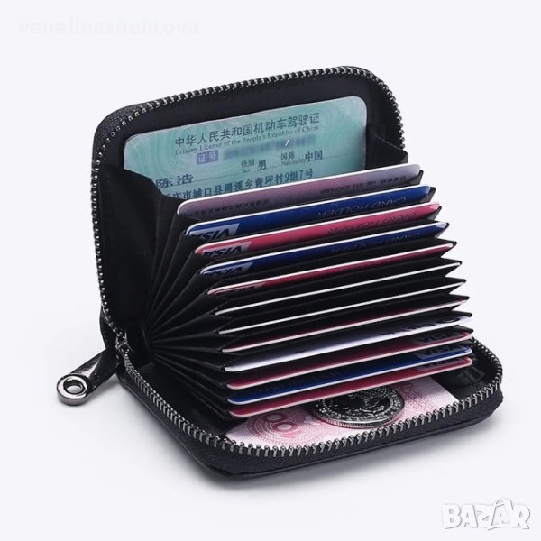 Дизайн с много отделения, с 2 позиции за банкноти, 12 позиции за карти.