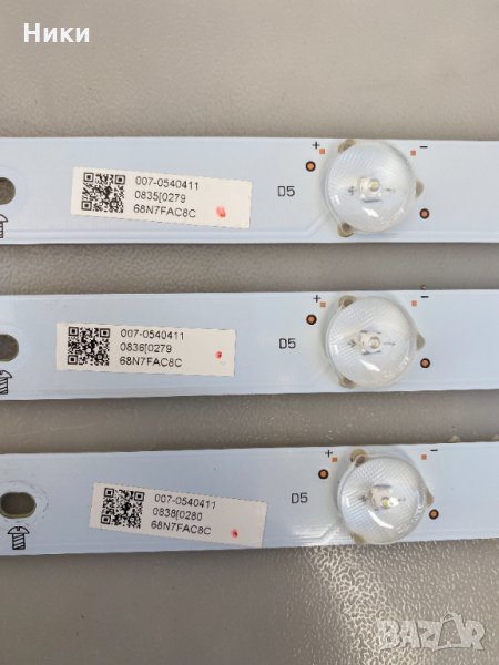 Продавам комплект лед подсветки свалени от работещ телевизор със счупен дисплей. Подсветките са 3бр. свалени са от телевизор Philips 32phh4309/88 . Изпращам по