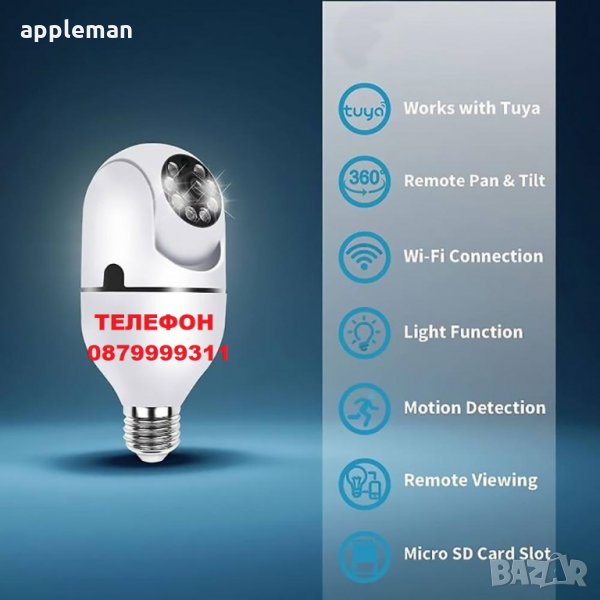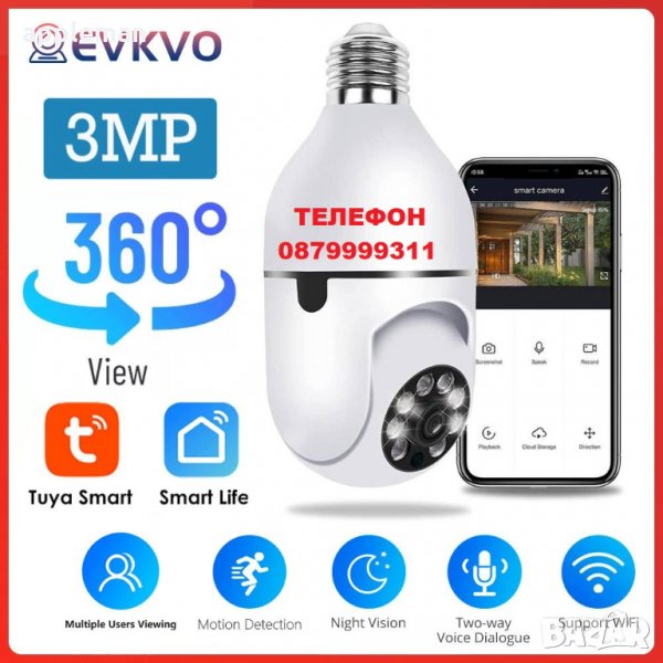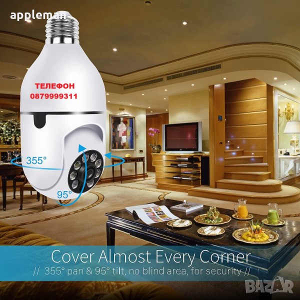 Куполна камера тип крушка с ъгъл на видимост 360° и вграден микрофон. Може да се използва за скрито видеонаблюдение, наблюдение на персонала, контрол на клиентите в търговски обекти, контрол на качеството на обслужване. Камерата може да се завърти на 355 градуса хоризонтално и да се завърти на 110 градуса вертикално. Работи в дневен и нощен режим. Aвтоматично включване в нощен режим или ръчно чрез мобилното приложение: YI IoT, което е налично за iPhone и Android БЕЗПЛАТНО. Изключително лесен монтаж. Вграден микрофон с висока чувствителност и говорител за двупосочна аудио връзка.