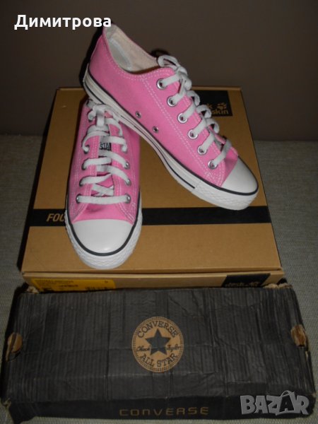 Ниски кецове Converse All Star в страхотен цвят! Обувани не повече от 2-3 пъти и са в идеално състояние! Отговарят си на номера /снимала съм номера и стелката по етикет/