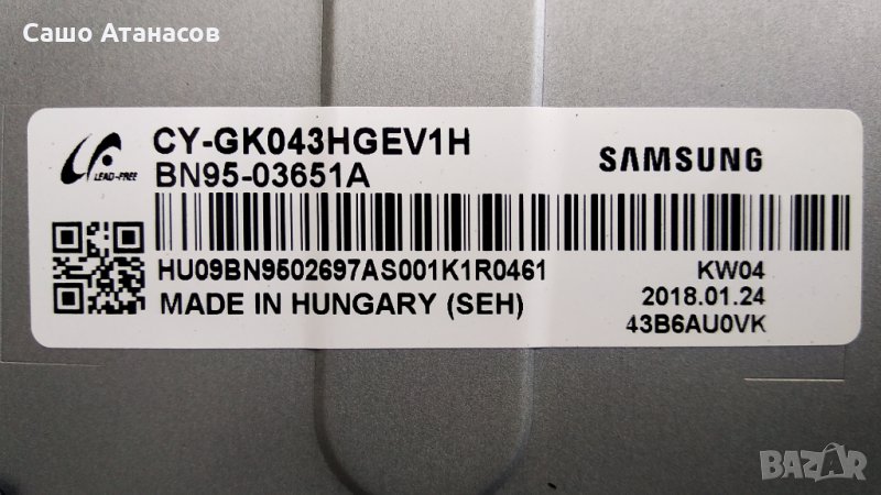 Модули от телевизор SAMSUNG UE43MU6172U със счупена матрица (панел CY-GK043HGEV1H / BN95-03651A )
