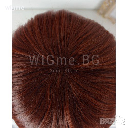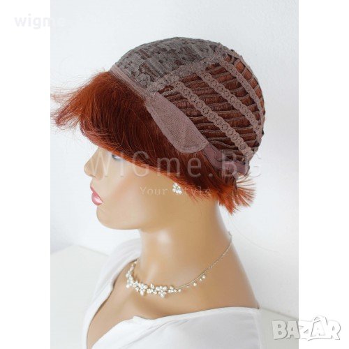 Къса рижава перука с бретон Лин е с универсален размер – можете да регулирате широчината й с помощта на специални ластици, които задържат стабилно перуката върху главата Ви и предпазват от разместване. Това е красива, естествено изглеждаща реалистична перука подходяща за ежедневно носене или тематично събитие.