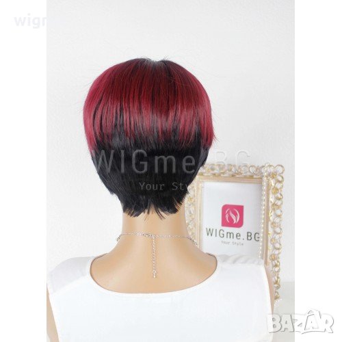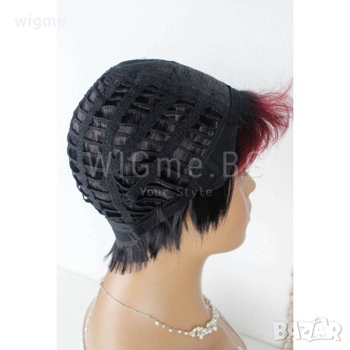 Къса червено-черна перука с бретон Чери е с универсален размер – можете да регулирате широчината й с помощта на специални ластици, които задържат стабилно перуката върху главата Ви и предпазват от разместване. Това е красива, естествено изглеждаща реалистична перука подходяща за ежедневно носене или тематично събитие.