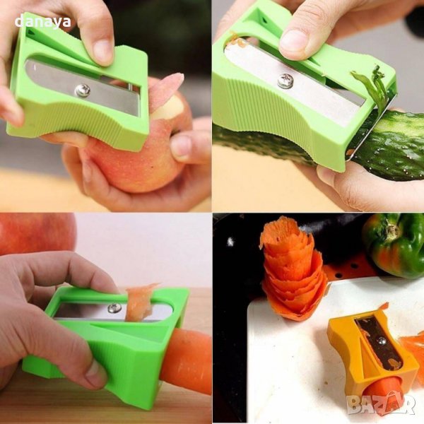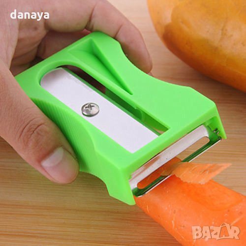 Острилка за моркови, краставици и всякакви твърди плодове и зеленчуци. Практичен уред за декорации на зеленчуци и плодове, за декориране на салати и ястия. С острилката може да режете зеленчиците на жулиени или спирали. Кухненски помощник за изрязване на различни формички от зеленчуци или плодове.