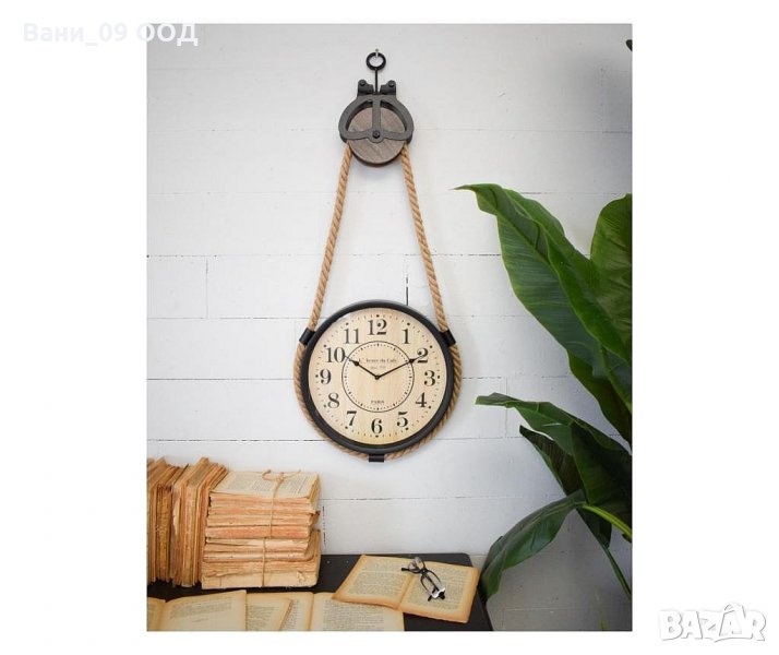 Стенен часовник-дърво, въже и метал → Обява 34357334