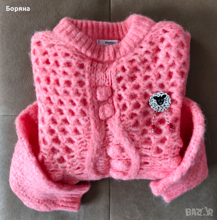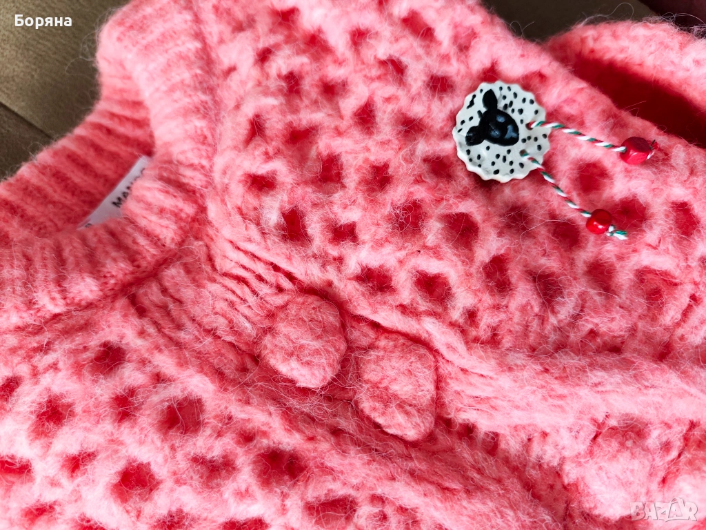 MANGO - Разкошен бебешко розов мохерен пуловер с брошка → Обява 34359032
