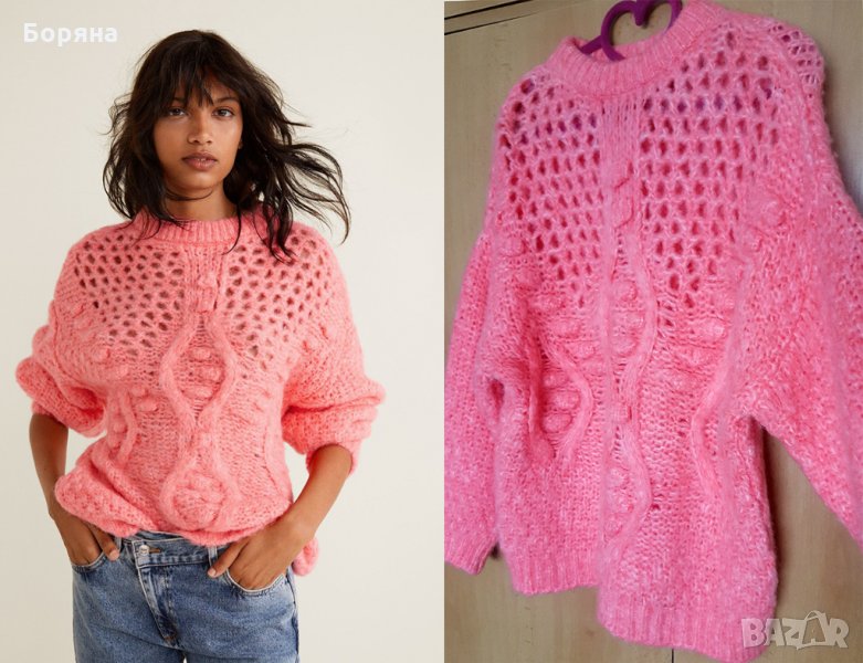 Страхотен пуловер на MANGO в бебешко розов, изключително меко и топло плетиво,което не боцка, акрил и мохер на едра плетка. Размер S, носен само веднъж. В отлично състояние. Закупен от сайта на MANGO за 89 лв.