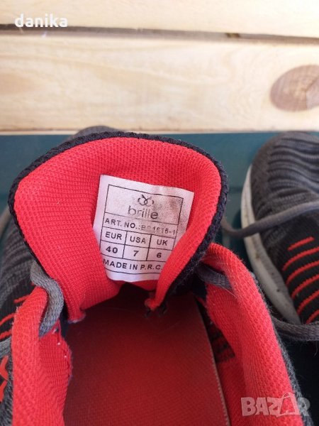 Страхотни маратонки на Brille закупени от магазин на Sport depots Свежа комбинация от червено, сиво и черно . Фабрично напръска подметка. Много малко използвани, без забележки. Леки и удобни .