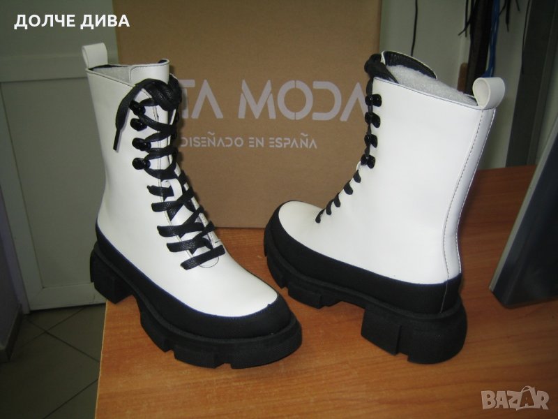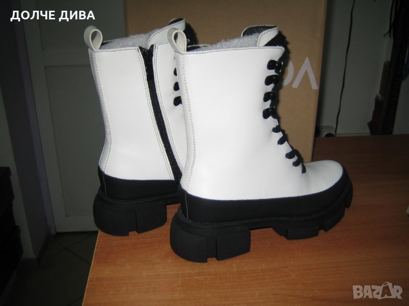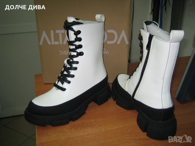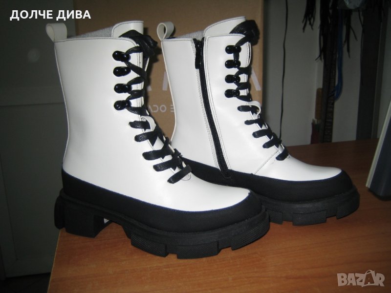 Дамски боти /кубинки/ м.6002 бяли и черни-намаление → Обява 34361688